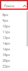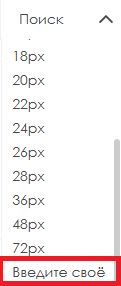 - По умолчанию пользователь увидит подсказку "Введите своё значение" внутри окна параметра "Размер шрифта"