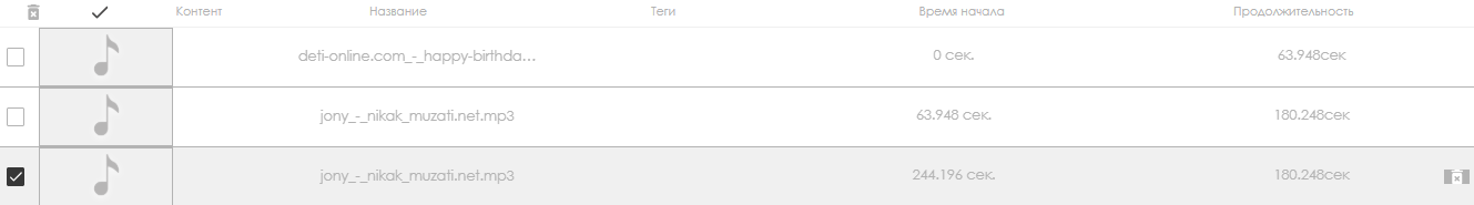 После добавления аудиоконтента пользователь может произвести его настройку. Для этого ему необходимо кликнуть на иконку.