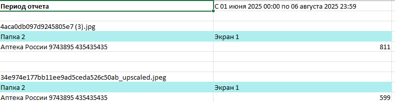 Сформированные отчеты внутри личного кабинета выводят определенные данные: