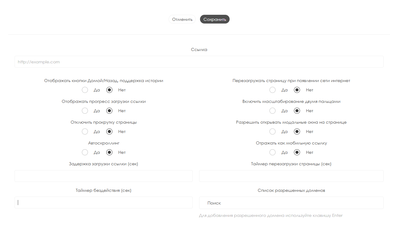 Для типа контента «Ссылки» были добавлены параметры, которые позволяют кастомизировать проигрывание данного контента в трансляции. Ниже будет подробнее список параметров.