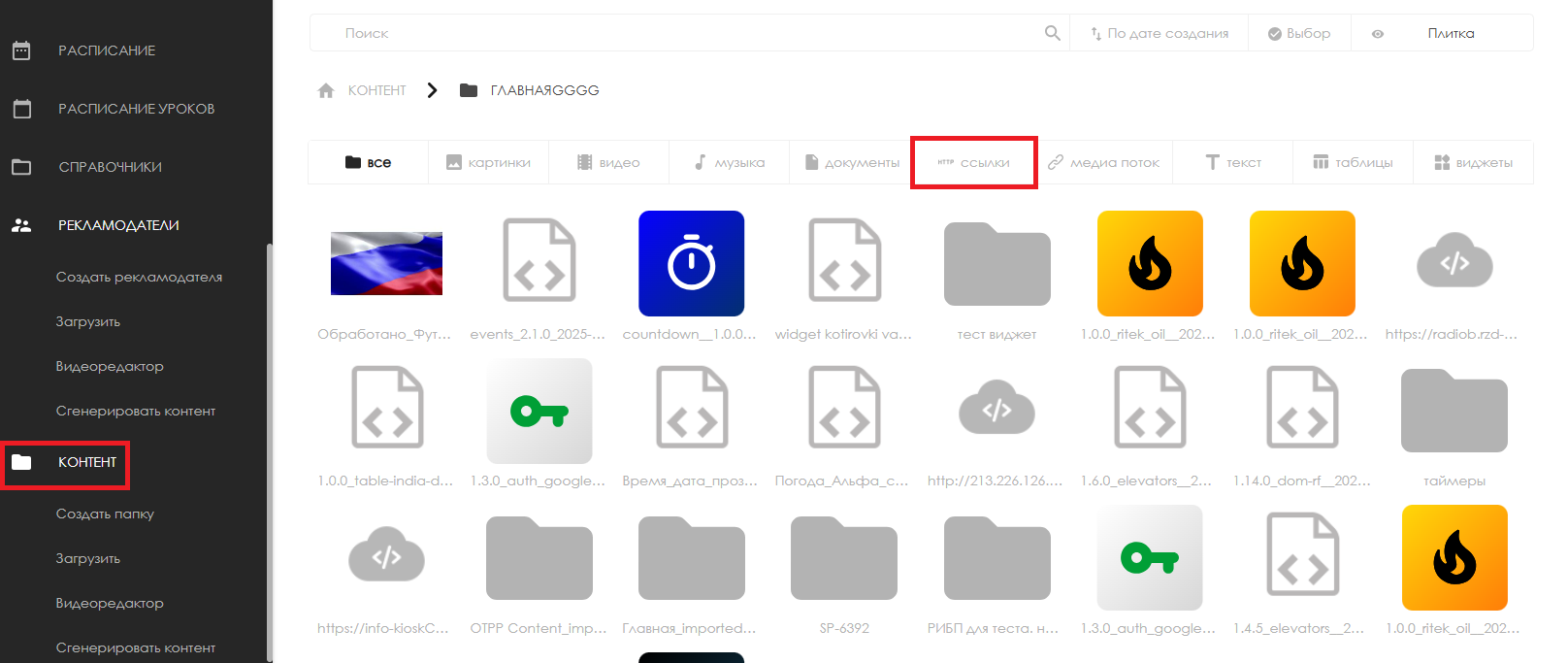 Следующим шагом пользователь должен перейти в раздел «Контент» и выбрать тип контента «Ссылки».