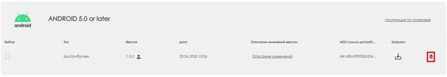 В этом блоке пользователю необходимо найти свой дистрибутив и навести на него курсор. При наведении на дистрибутив подсветится иконка «Удалить» в виде мусорной корзины.