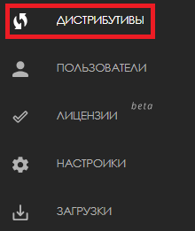 Далее пользователю необходимо перейти в раздел «Дистрибутивы» в личном кабинете.