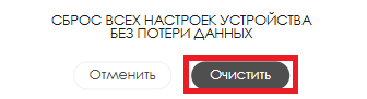 После клика появится модальное окно с оповещением о сбросе всех настроек без потери данных. Необходимо нажать на кнопку «Очистить», чтобы запустить процесс сброса настроек.