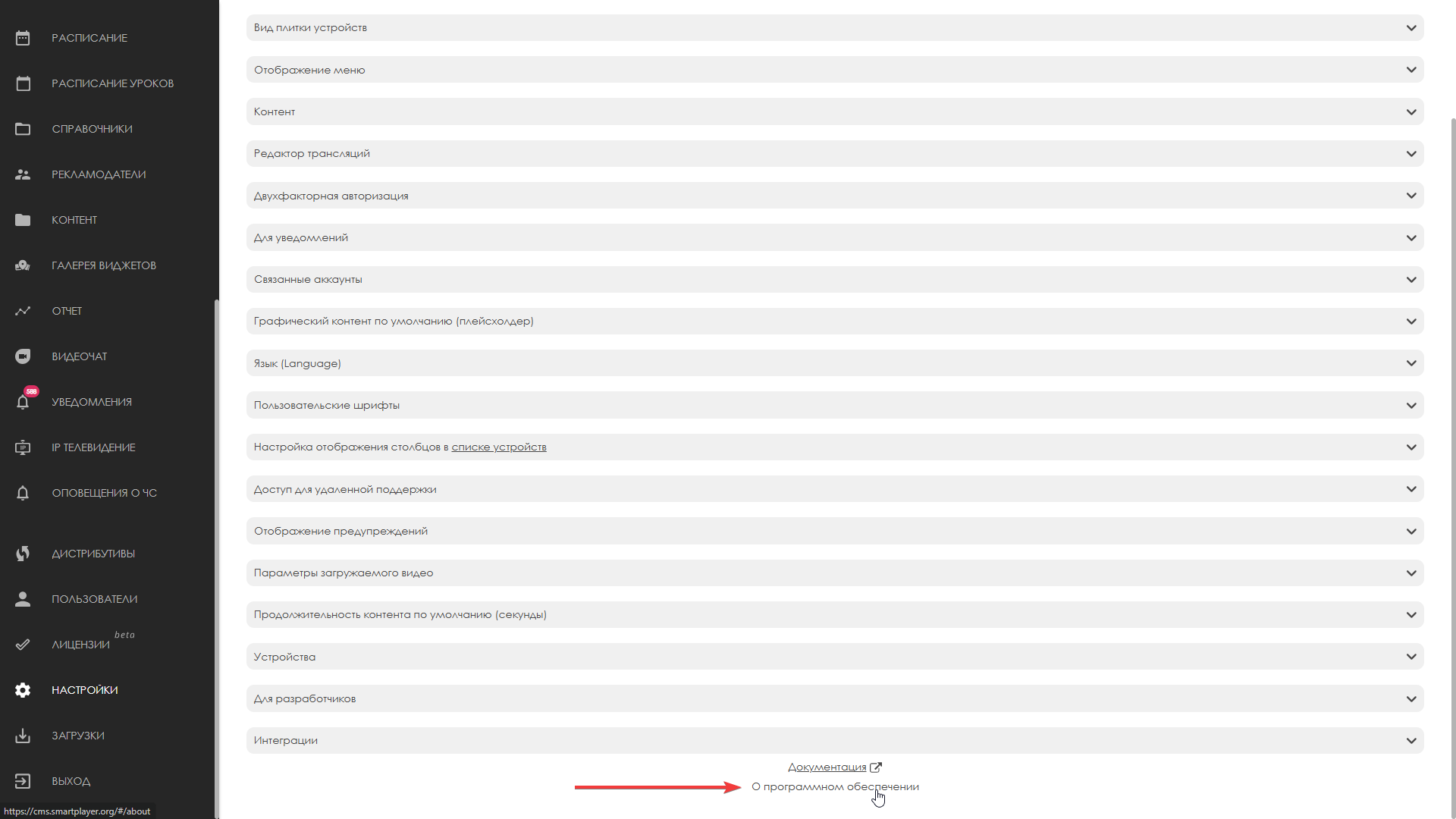 Как узнать адрес / версию серверного в платформе и личного кабинета SmartPlayer