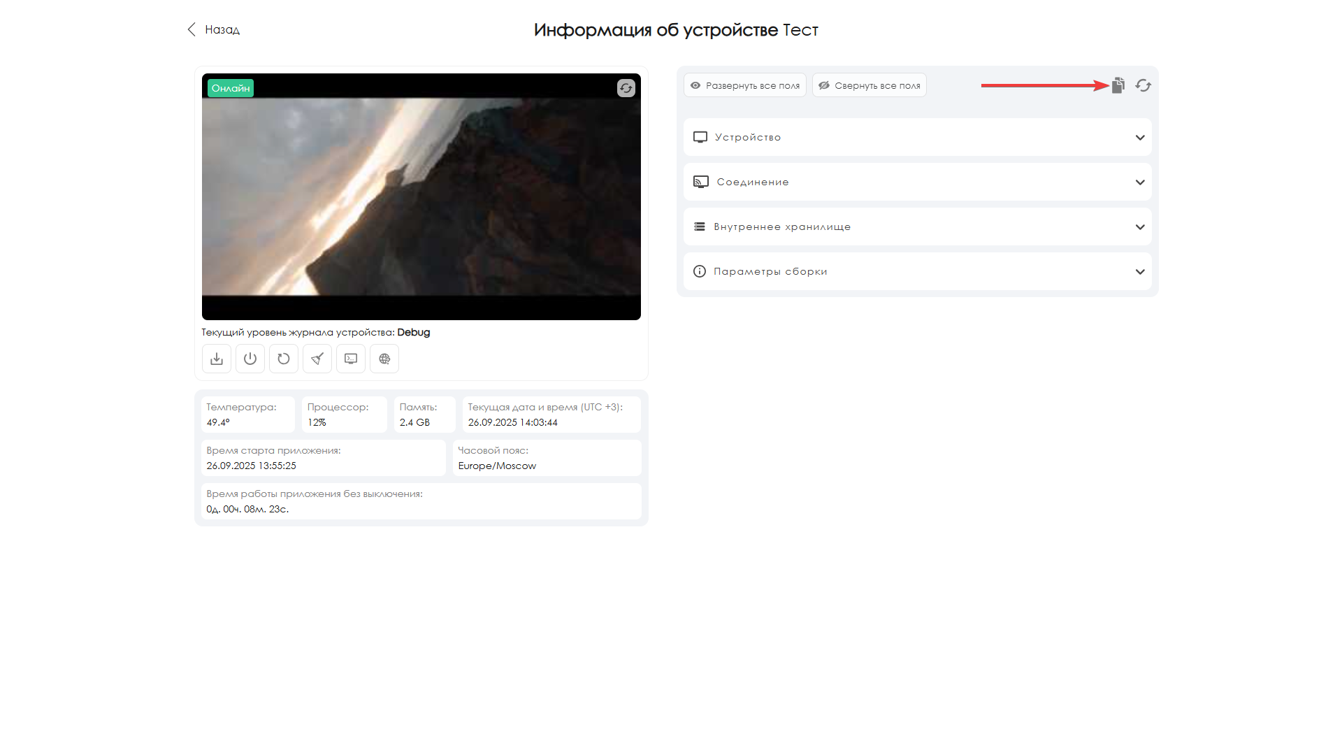 5. В открытой карточки устройства нажать на значок "копировать в буфер обмена" (в правом верхнем углу)