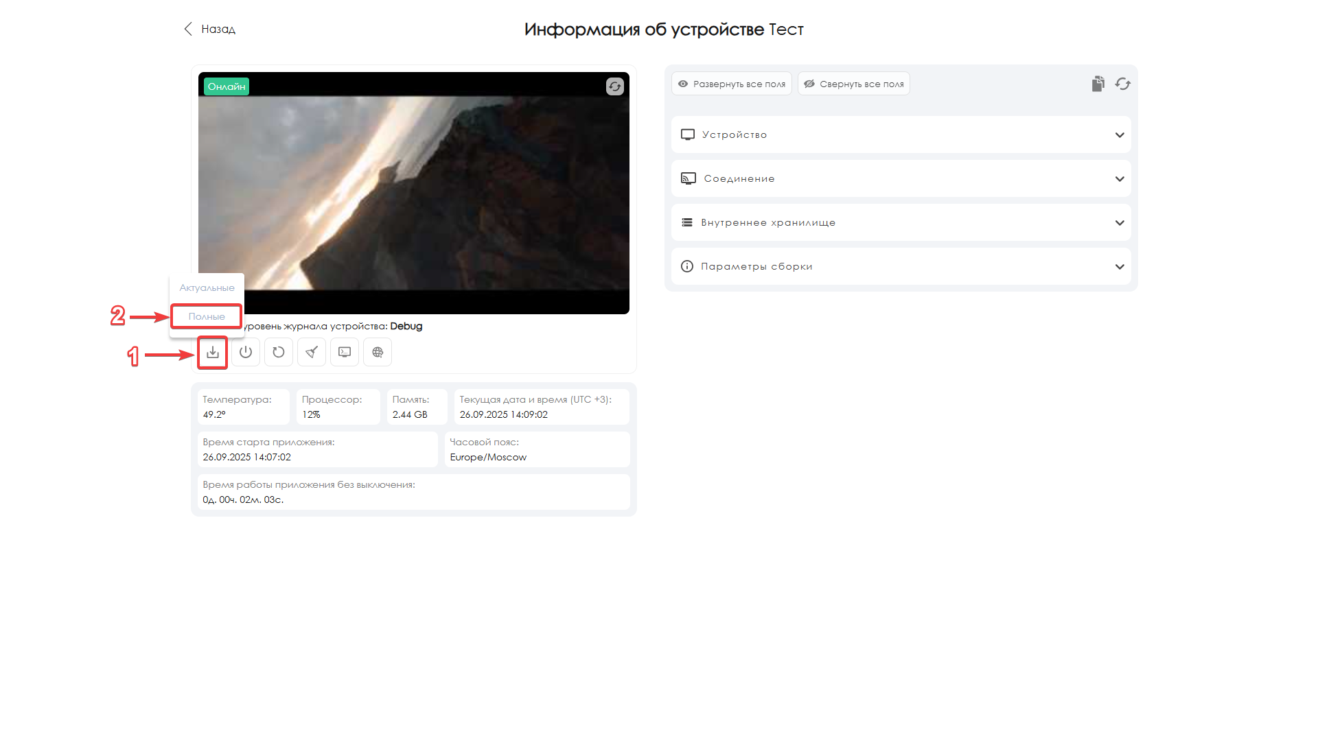 Каждое клиентское приложение пишет журнал событий в свою внутреннею память устройства, при необходимости его можно получить и отправить для анализа в техническую поддержку SmartPLayer, чтобы получить максимально полезные логи сделайте следующие действия: