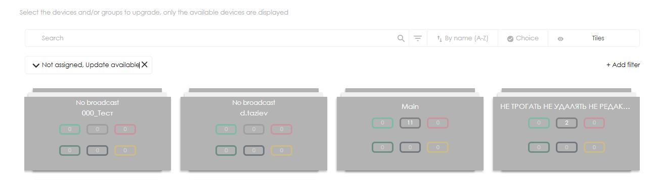 - In the menu that appears, the devices for which the firmware update is available will be displayed.