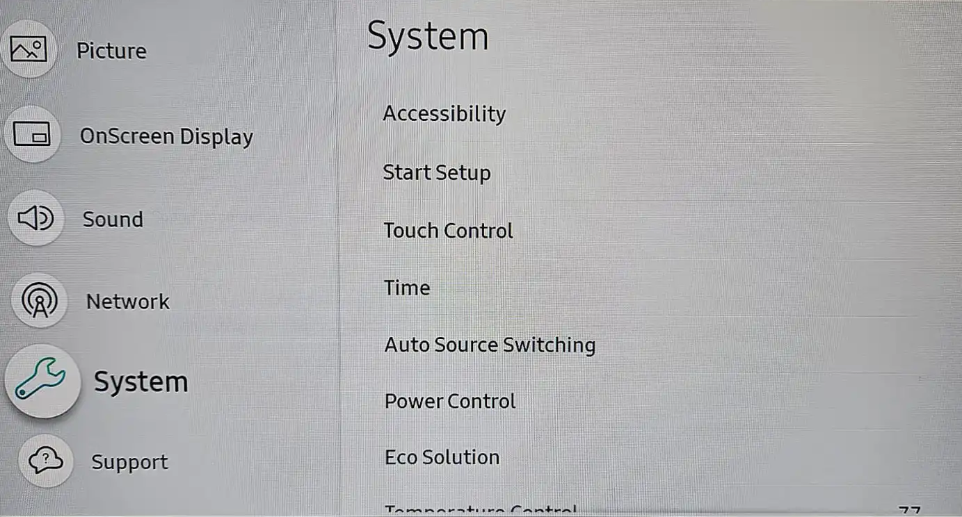 Make sure you are using the latest recommended firmware before starting the system. To do this, press the "Menu" button on the remote control. In the menu that appears, select "System" -> "Contact Samsung". The latest firmware versions can be found here: Latest Samsung firmware
