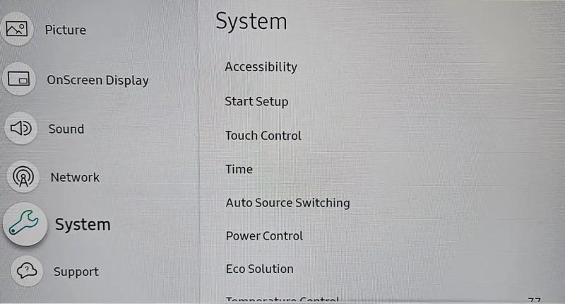 Make sure you are using the latest recommended firmware before starting the system. To do this, press the "Menu" button on the remote control. In the menu that appears, select "System" -> "Contact Samsung". The latest firmware versions can be found here: Latest Samsung firmware