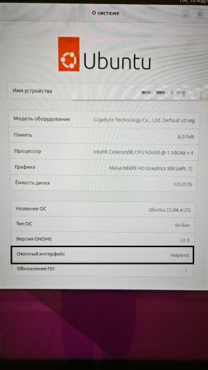 *Процессор: Intel | *'''Windowing System:''' Wayland | ||