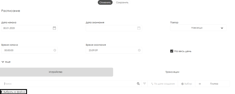 While developing the SmartPlayer platform, the development team continues to add new features. Now when configuring schedules, users can add object information from ".xlsx" files in bulk.