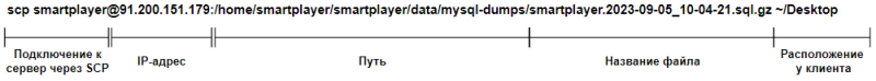 scp smartplayer@<Ip-адрес сервера на котором работает платформа>/:<путь до бэкапа> ~/<Путь куда необходимо перенести файл>