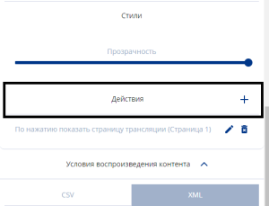 - Нажав на иконку "+" рядом со строкой действия, пользователь открывает настройки.