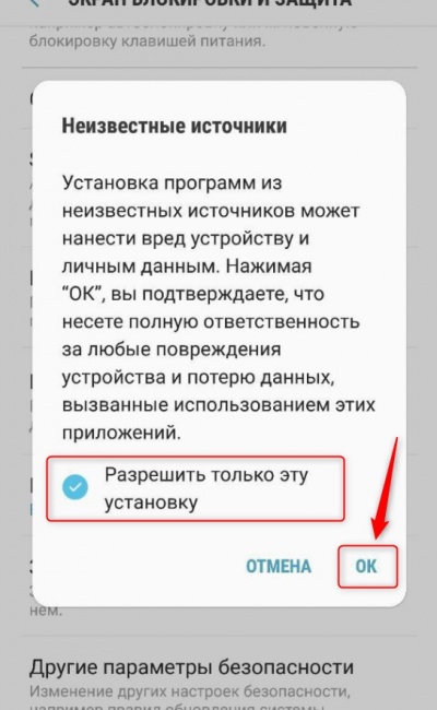 - Configurações do Android 8.0+ -> Aplicativos -> Configurações adicionais (... no canto superior direito) -> Direitos de acesso especiais -> Instalar aplicativos desconhecidos -> Permitir a instalação dos aplicativos necessários