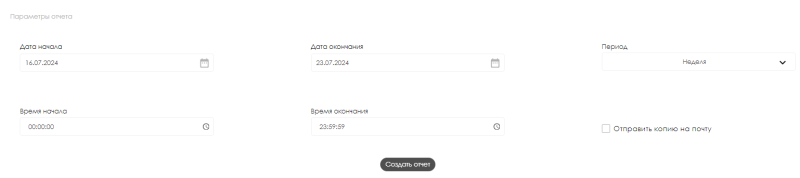 - Чекбокс/галочка отправить копию на почту - позволяет отправить отчет на почту привязанную к личному кабинету.