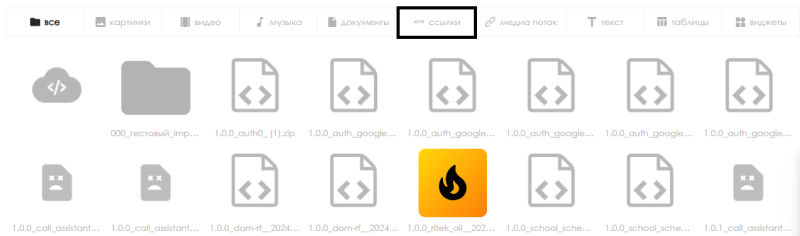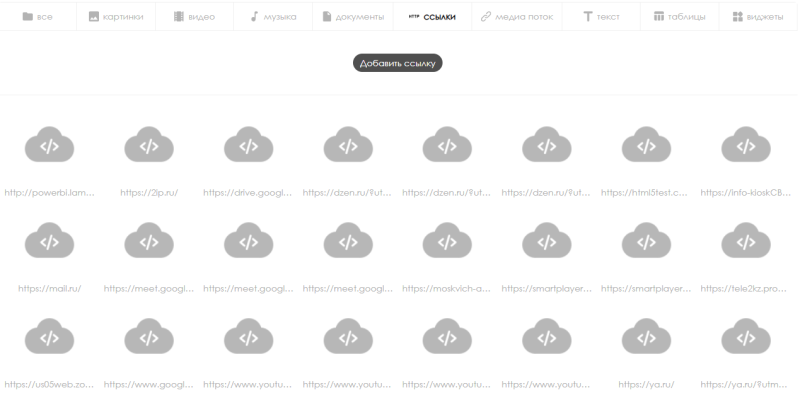 Выбрав данный тип контента пользователь может перейти на страницу, в которой расположены все ссылки, доступные в качестве контента.