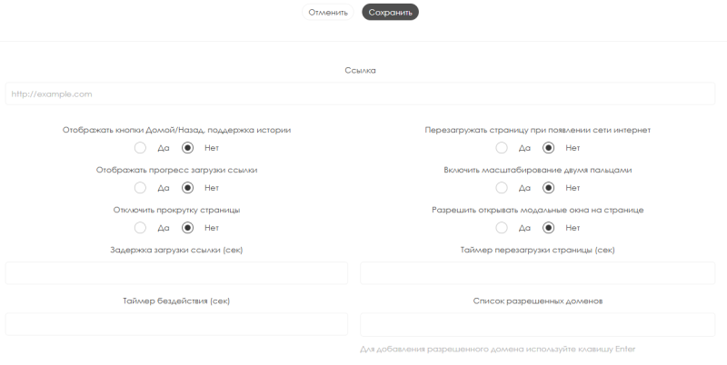 • Таймер перезагрузки страницы - позволяет пользователю вручную прописать значение таймера, который отвечает за перезагрузку страницы, которая проигрывается как ссылка. Измеряется в секундах (сек.)