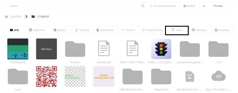 На открывшейся странице пользователь в строке "Тип контента" должен найти контент "Текст".
