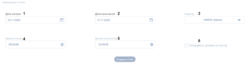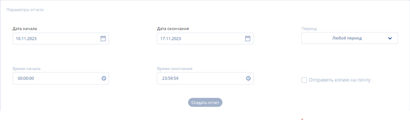 - Дата окончания - конечная дата, по которое будет собран отчет.
