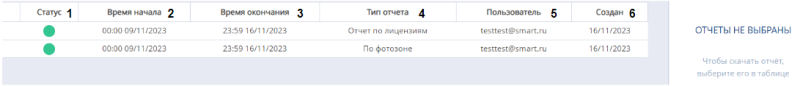 - Пользователь - указывается почта пользователя, создавшего отчет.