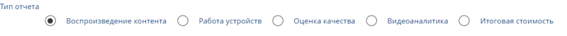 Этот раздел может предоставить пользователю отчёты о работе устройств, контента, трансляций, рекламных кампаний. Весь раздел поделён на несколько рабочих зон, позволяющих выбрать какой формат отчета необходим и от какого устройства должен поступить отчет.