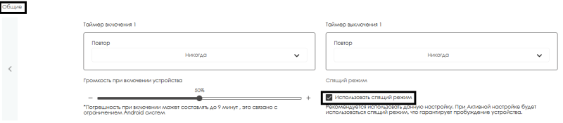 Активация данного чекбокса позволит использовать на устройствах режим "Засыпания".