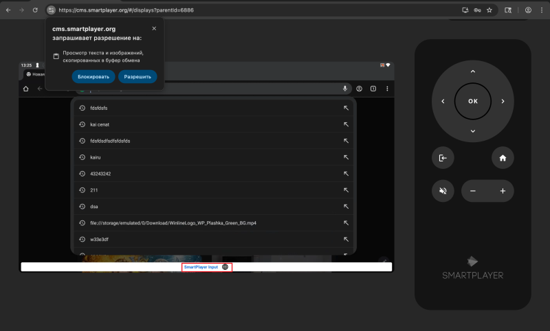 - захват клавиатуры — активирует специальную клавиатуру SmartpLayer для работы с устройством.