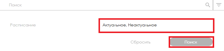 Пример отображения фильтра «Расписание»