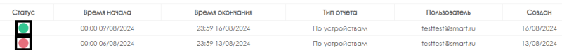 - Успешно сформированный отчет отмечен иконкой в виде зеленого круга