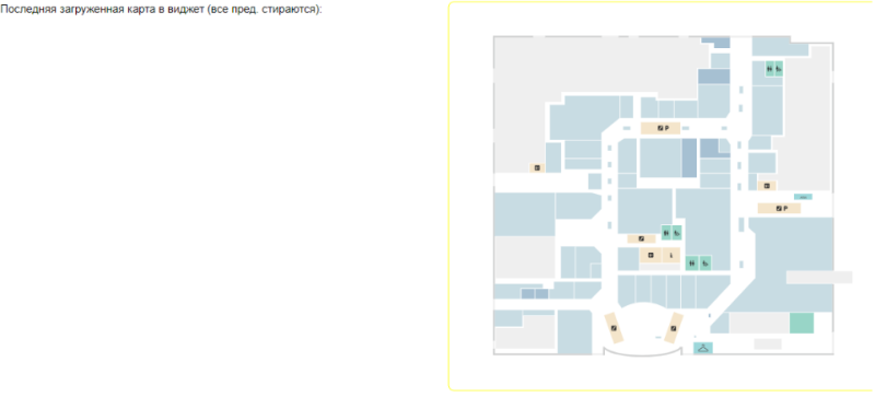 Примечание 1: на главной странице виджета можно выбрать категорию, кликнув по ней. После этого на карте можно будет увидеть подсвеченные помещения принадлежащие этой категории. Подсвеченные помещения будут помечены желтым цветом.