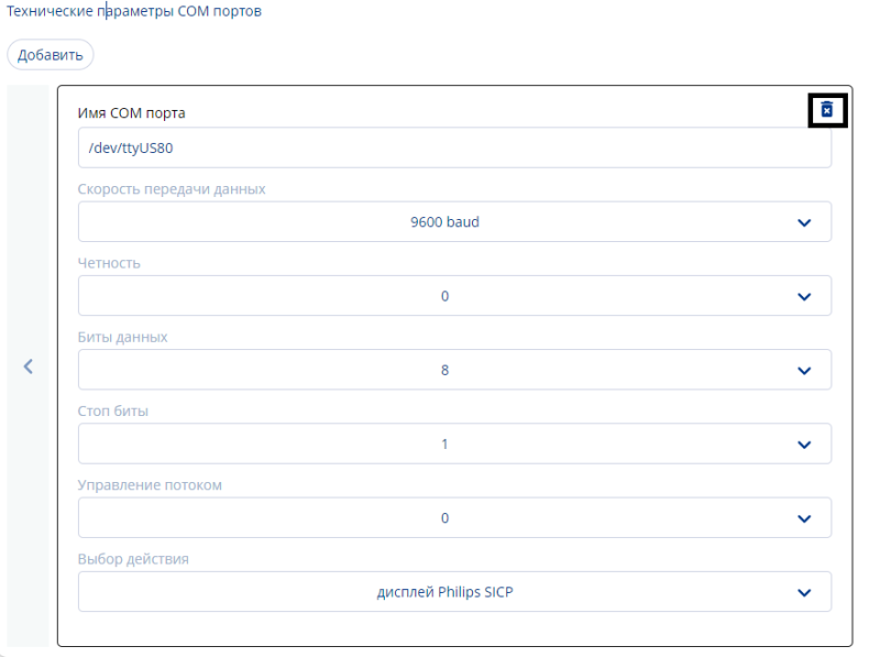 При добавлении COM-порта пользователю необходимо заполнить все поля в данном блоке.