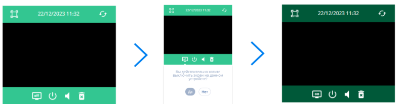 Пользователь может с помощью платформы smartplayer в любое время включить и выключить дисплей устройства через личный кабинет.