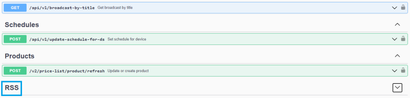 https://restapi.smartplayer.org/The next step requires the system administrator to find the RSS request specified in the Swagger UI.