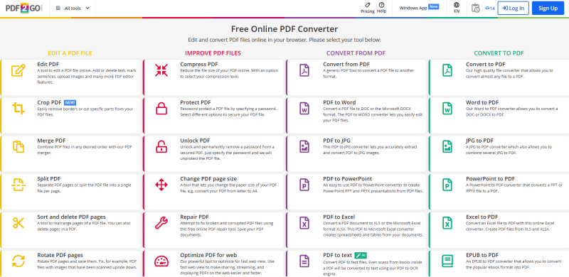 - использовать веб-сервис "PDF2Go" (Free online PDF editor);