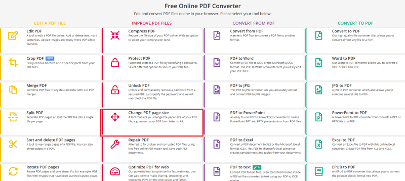 - внутри сервиса выбрать вариант "Change PDF page size";