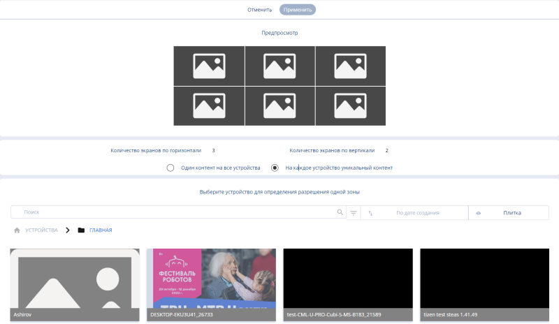 - Choose the content display mode: one content for all devices or unique content for each device