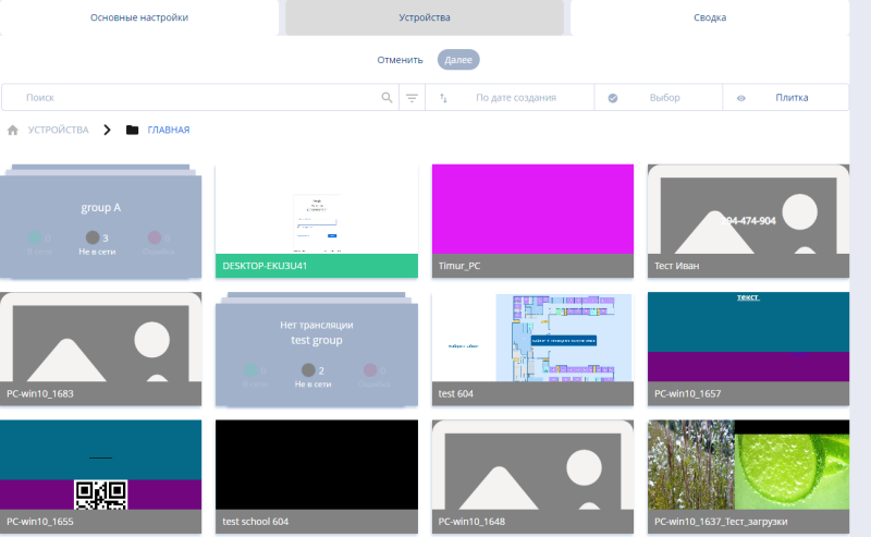 Страница "Устройства"