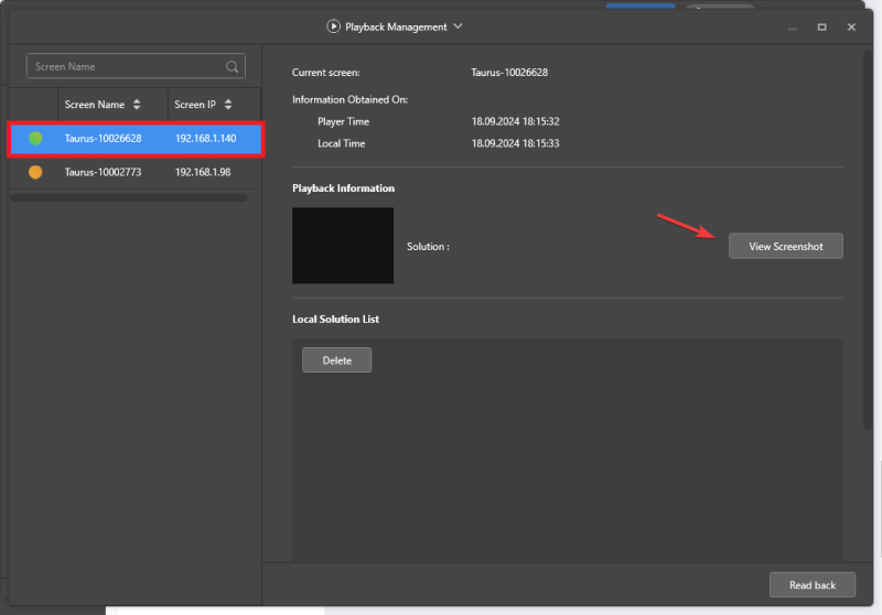 В появившемся списке слева пользователю необходимо выбрать устройство и нажать клавишу "View Screenshot".