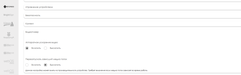 - Добавлена настройка IPTV для устройств под управлением BrightSign ОС