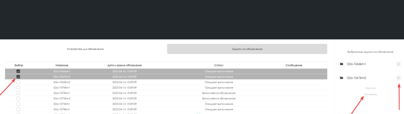 - Доработан выбор устройств в списке обновлений. Предоставлен второй способ отмены множественного выбора в списке обновляемых устройств. Реализована кнопка «Отменить выбор» в пункте «Задачи на обновление». В пункте «Задачи на обновление» переименована кнопка «Отменить» в «Отменить обновление»
