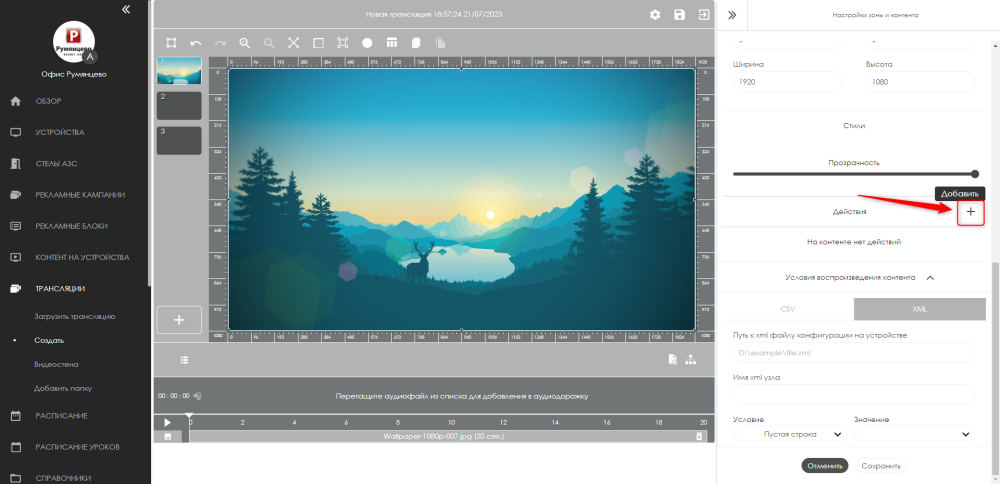 С помощью раздела Трансляции также можно создавать интерактивные инсталляции для использования в