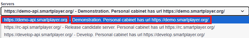 To test requests, the user must select one of the available servers. Each server is displayed as: "name" + "short description" (in English).