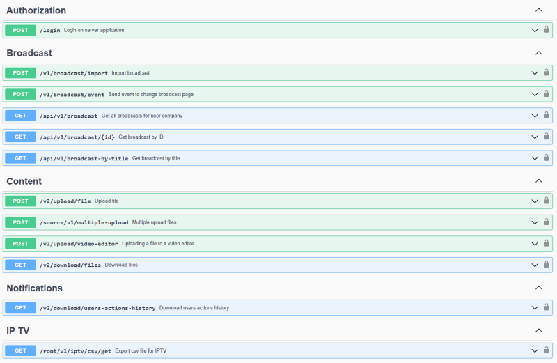 This section is built on the Swagger Plugin and allows not only to ознакомиться with connection information for REST API, but also to test described methods and receive real results. Advanced users can also test these methods using Postman.