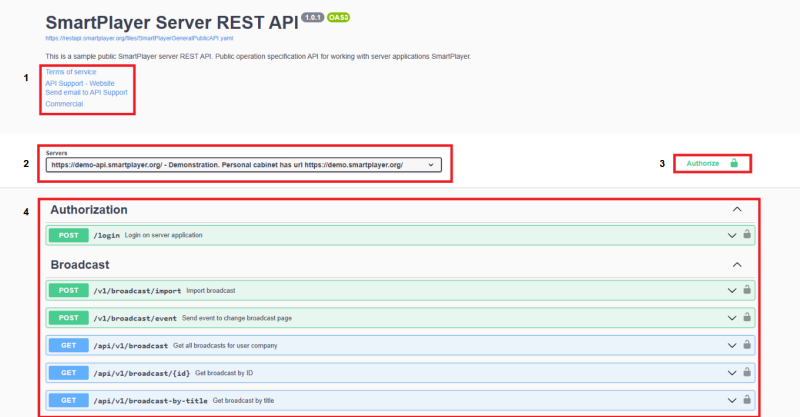 The REST API portal is available here. You can request authorization credentials (login and password) by contacting us via the portal or your assigned SmartPlayer specialist. You can also write to this email.