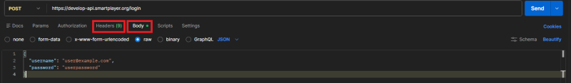 Configure headers and body: