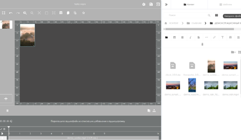 After setting the "Width" and "Height" parameters, the user should select the content to be played. This action is also done in the right toolbar.