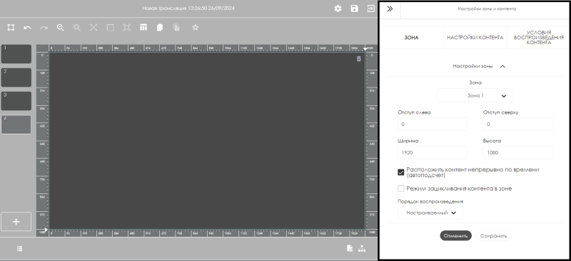 После выделения зоны для контента пользователь может индивидуально настроить зону с контентом, в соответствии со своими нуждами.