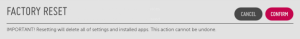 Если использовать "Factory Reset" - возврат к заводским настройкам, то с устройства пользователя будут удалены все изменения, внесенные в устройство Signage, включая настройки, загруженные приложения и параметры. В некоторых случаях, когда требуется сброс настроек с удаленного сервера, WebOS Signage предлагает функцию начиная с SCAP v1.7.4 с WebOS Signage 4.1 и более поздними моделями. Функция позволяет сделать Soft Factory Reset, которая позволяет оставить несколько настроек с измененными значениями, в отличие от функциональности Factory Reset.