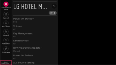- Insert the USB flash drive into the panel, go to the All Settings> General menu, press '7' 7 times, select Software Update in the menu and press OK, select Update Micom Software in the new menu, and press OK